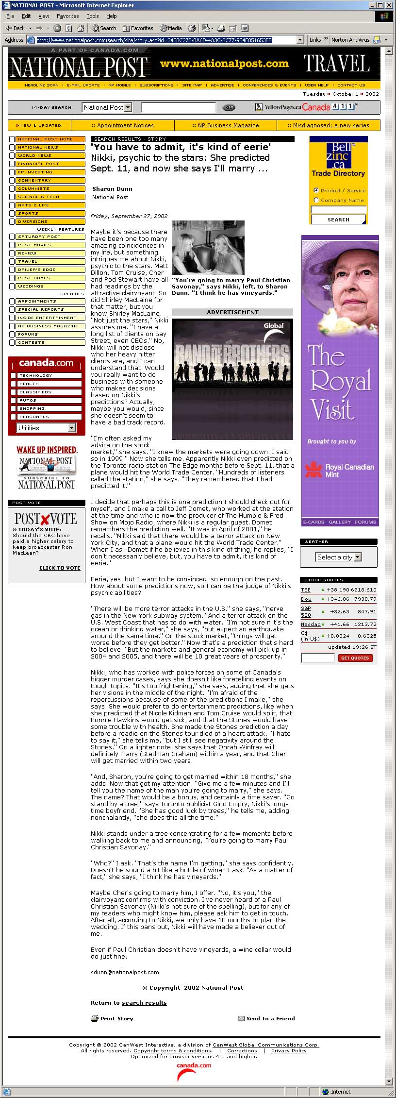 - CFMT recently did a profile on Nikki, as well as doing regular entertainment predictions