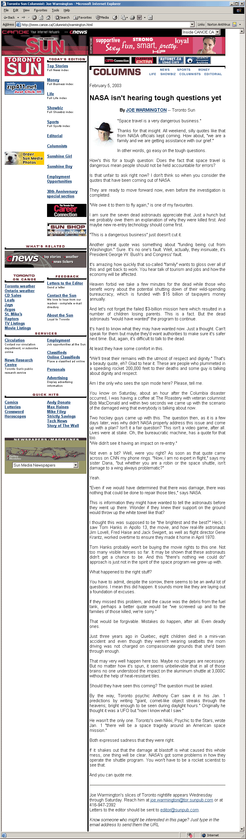 - Mentionned in the Toronto Sun (PDF version, Image, HTML version)